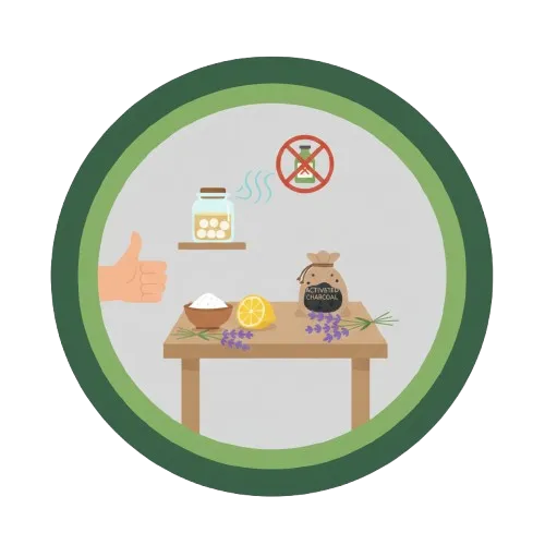 Activated charcoal is a highly porous material that naturally absorbs odor molecules from the air. It works through physical adsorption, trapping unwanted scents without releasing any chemicals.